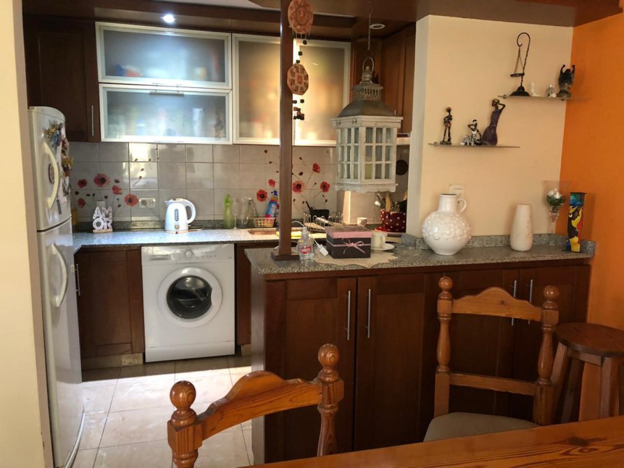 Cocina con barra desayunadora, muebles de son de madera en cedro.