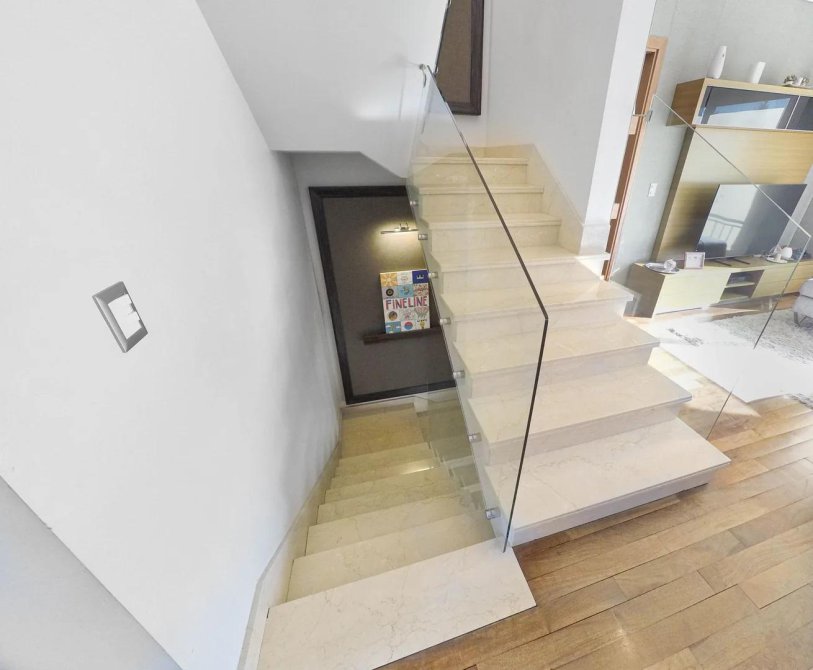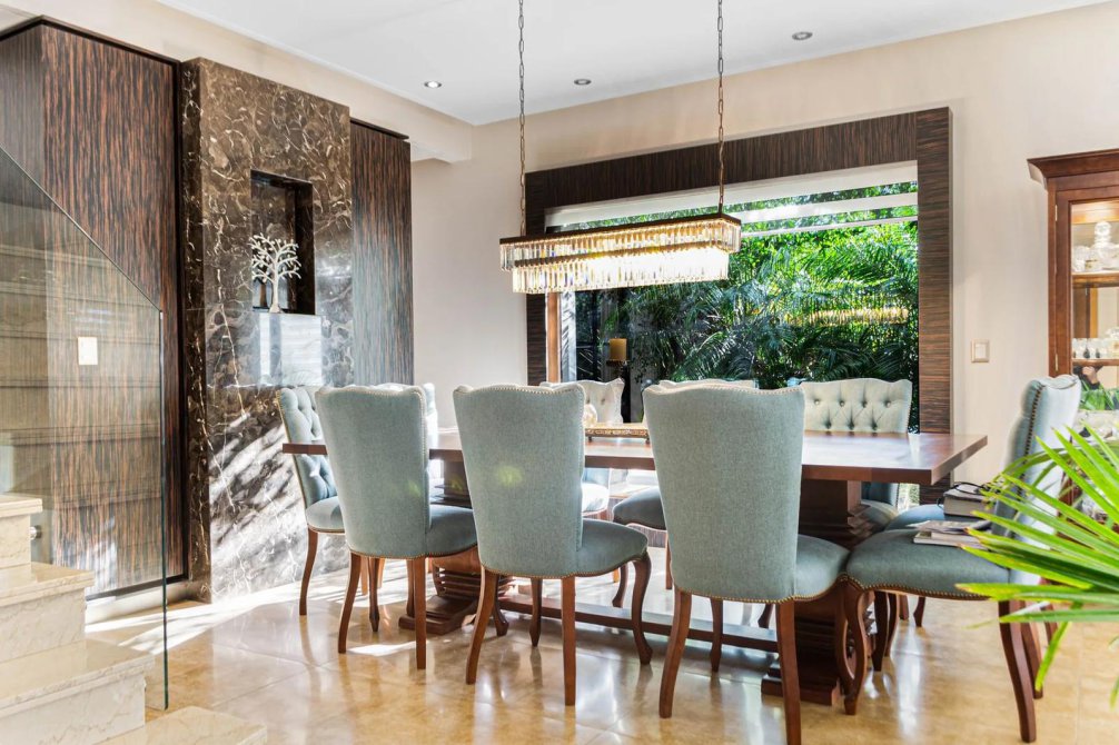 Pisos y revestimientos en toda la casa marca PORCELANOSA, combinado con mármoles importados y maderas exóticas lustradas. Todo el piso de la planta de dormitorios y family en madera maciza con cámara de aire.