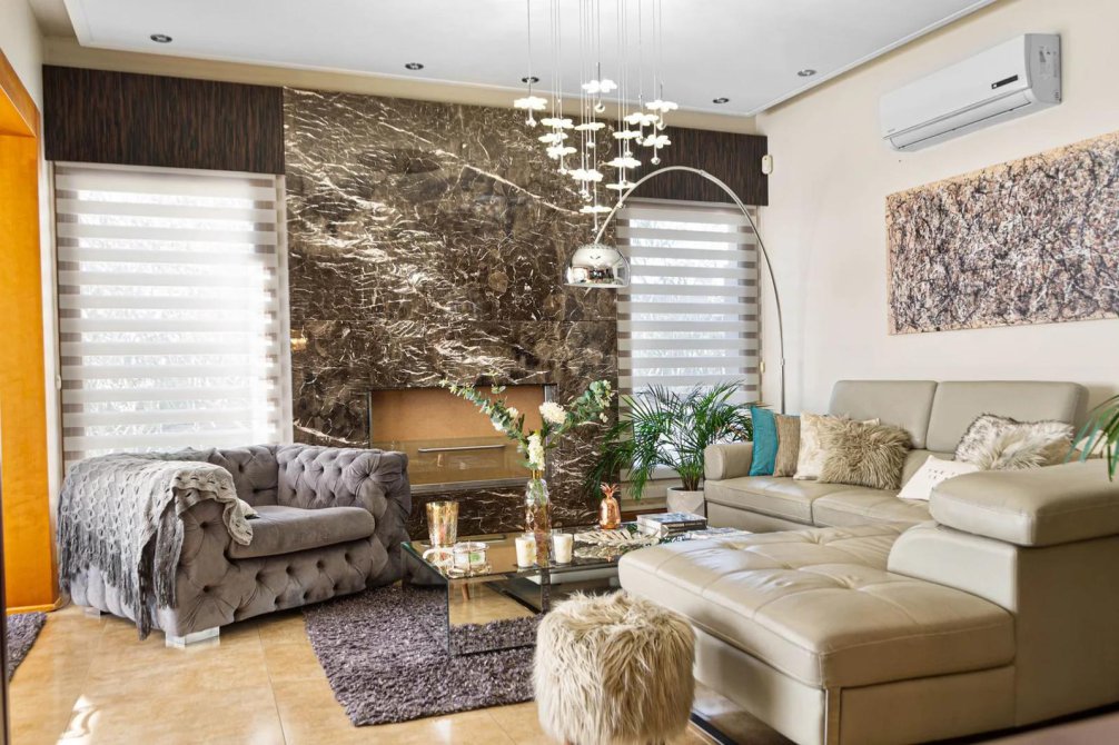 10 aires acondicionados frio/calor y Loza radiante en la totalidad de la casa con termostatos individuales por ambiente.