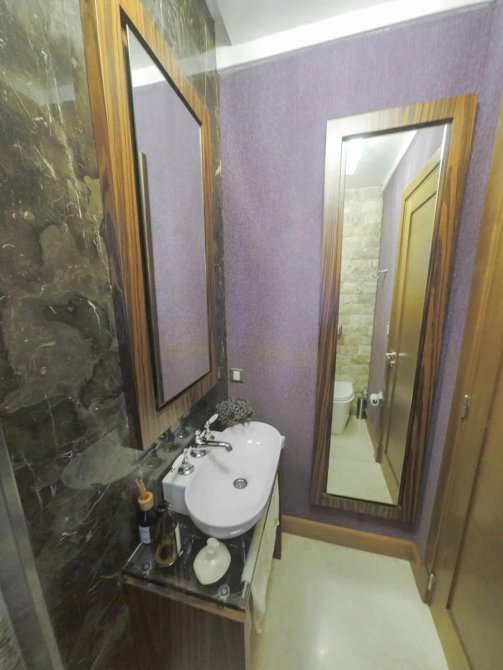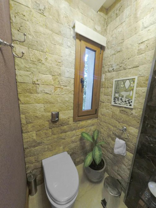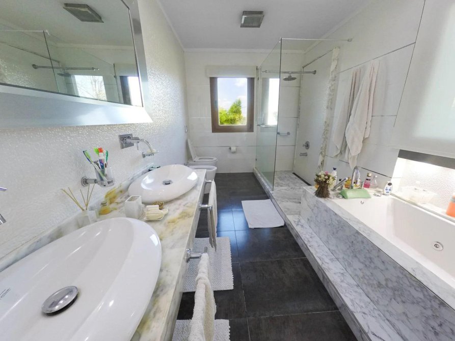 8 baños en total, con loza FERRUM MARINA, griferías FV y todos los receptáculos de ducha hechos a medida en mármol importado, con desagotes a medida en acero inoxidable y mamparas también a medida marca SHAWER. Mesadas en mármol con bachas de apoyo y espejos retro iluminados con led.