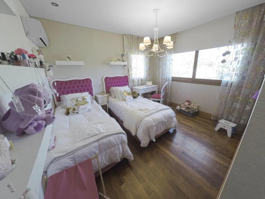 Todo el primer piso con paredes enteladas en distintas telas, tanto los dormitorios como el family, estantes aplicados a las paredes en maderas exóticas lustradas, armarios open a medida y cortinados a control remoto regulables. Cada cuarto con su respectivo piso de loza radiante con termostatos para regulación de temperatura individual incluyendo los baños por separado.