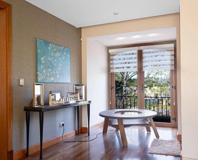 Aberturas exteriores de PVC marca SCHUCO alemanas, con vidrios DVH. Doble ventana pivotante VELUX en altillo. Aberturas interiores y doble puerta de entrada marca MORAS, todas hechas a medida y lustradas.