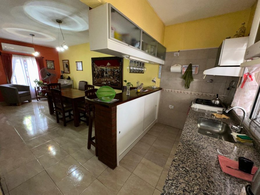 Amplio ambiente unificado, Living-Comedor-Cocina, comunicados a través de pasaplatos con base en madera.-