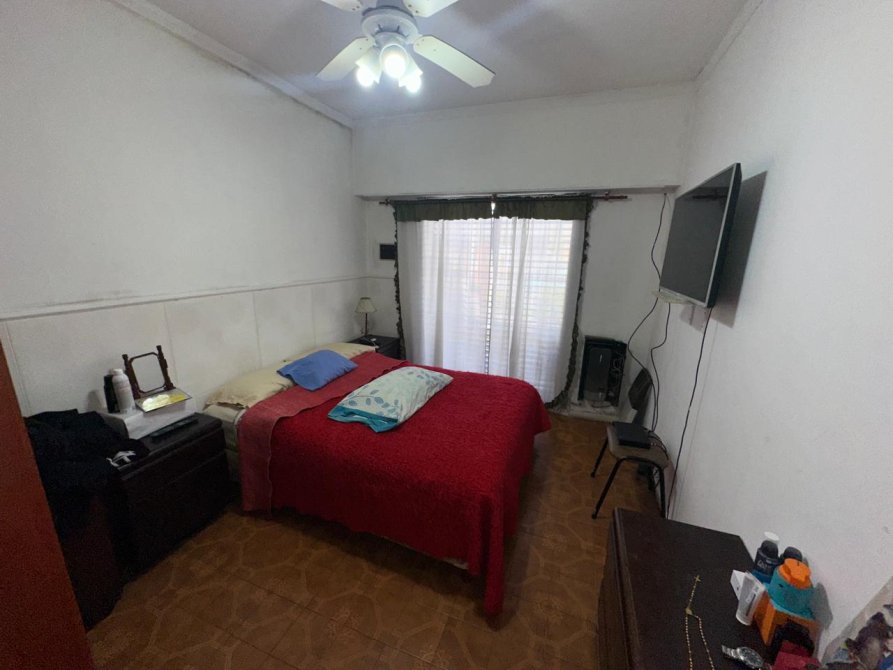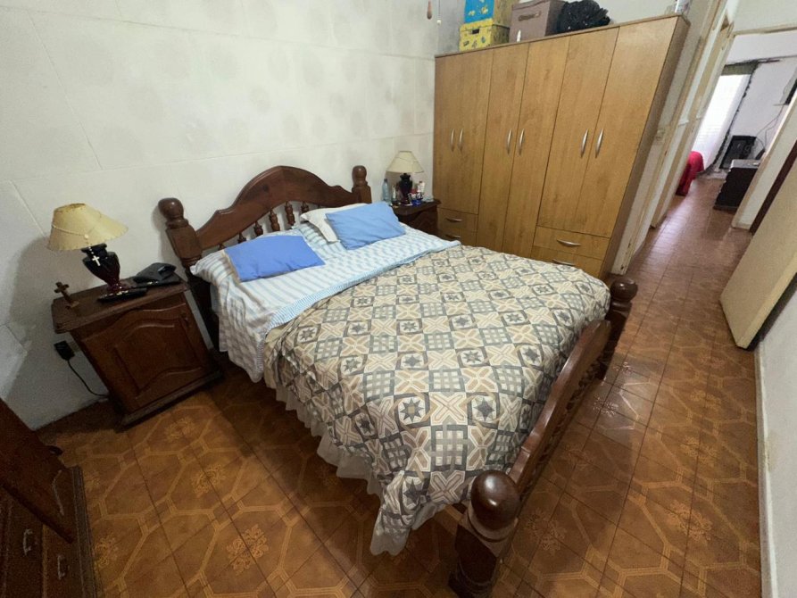 Dormitorio al frente con piso cerámico, ventana en aluminio con persiana tipo barrio en madera y rejas.-