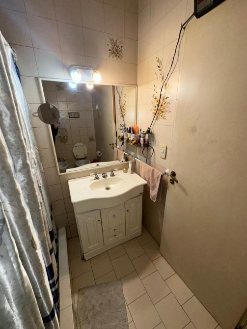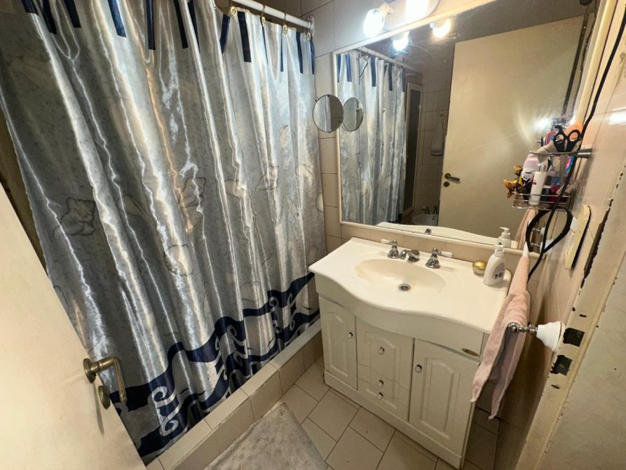 Baño con revestimiento cerámico, vanitory, placard empotrado, sanitarios y receptáculo de ducha.-