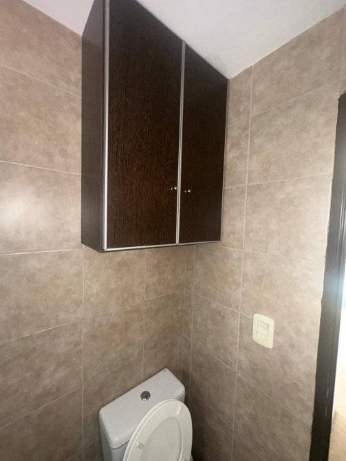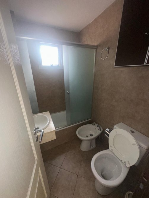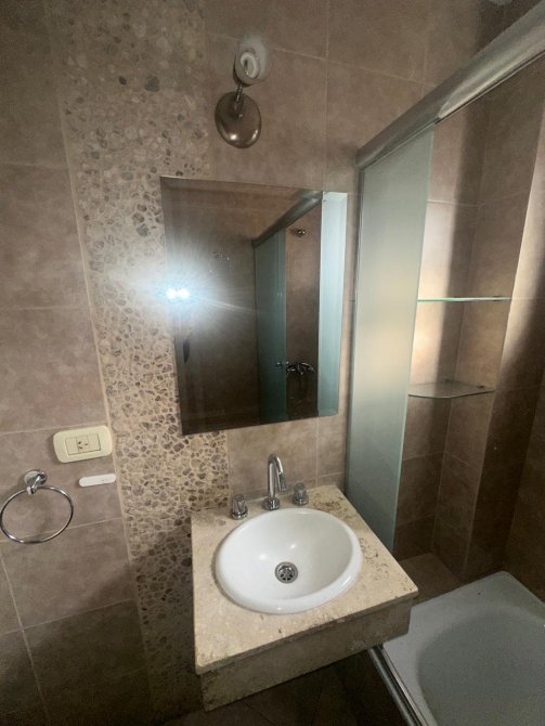 Baño complemento con revestimiento cerámico, lavatorio, sanitarios y bañera con mampara de vidrio.-