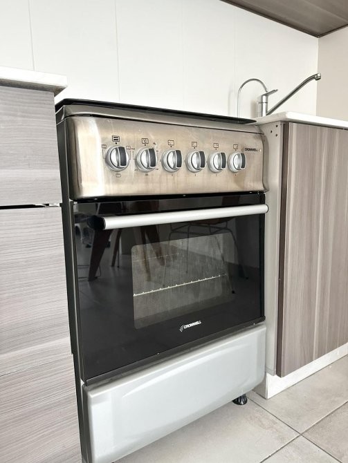 La cocina integrada, de estilo moderno, se encuentra equipada con muebles de bajo mesada y alacena de excelente calidad, bacha de acero inoxidable con grifería monocomando, artefacto de cocina en acero inoxidable y extractor de aire.-