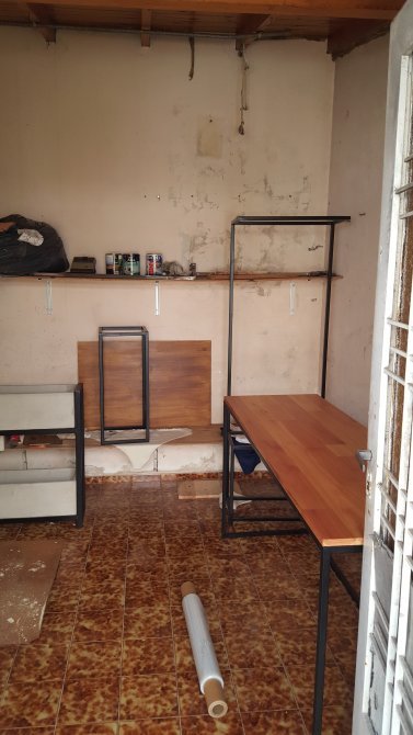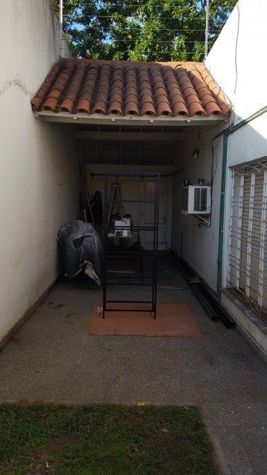 Garage pasante con portón en madera corredizo.
