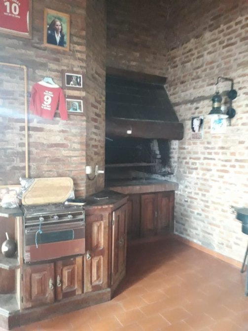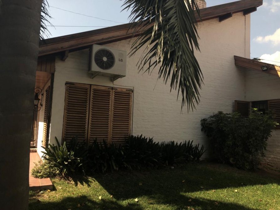 Quincho: ventanas balcón de dos puertas con vidrio repartido en cedro, paredes y ladrillos rasados, con parrilla, y lavadero completo. Desde el quincho se accede a la cochera descubierta al frente y el mismo se puede utilizar como cochera cubierta para mas autos.