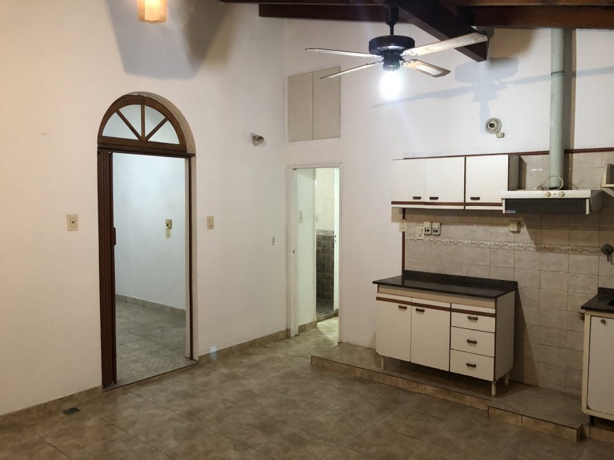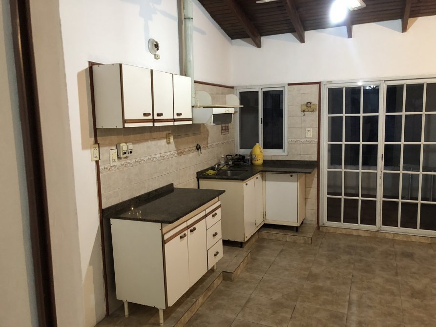 Cocina comedor al contrafrente, muy amplia, con amoblamientos de bajomesada y alacena en fórmica y madera. Altillo. Ventana balcón en vidrio repartido.