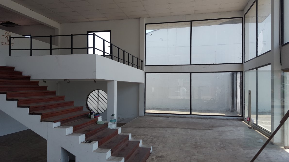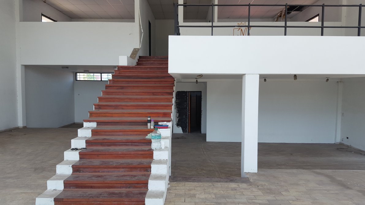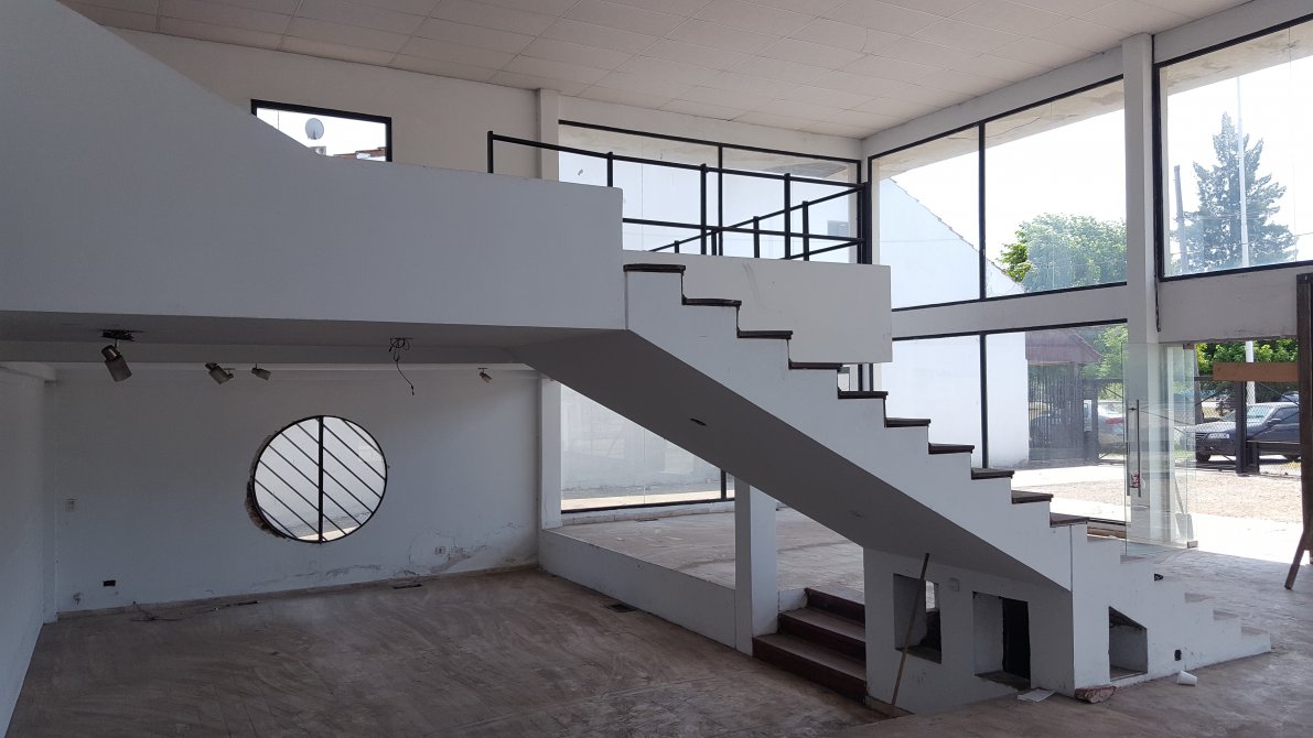 Amplio salón en planta baja.- Entre piso balconeado en el segundo nivel.- Oficinas en el nivel superior.-