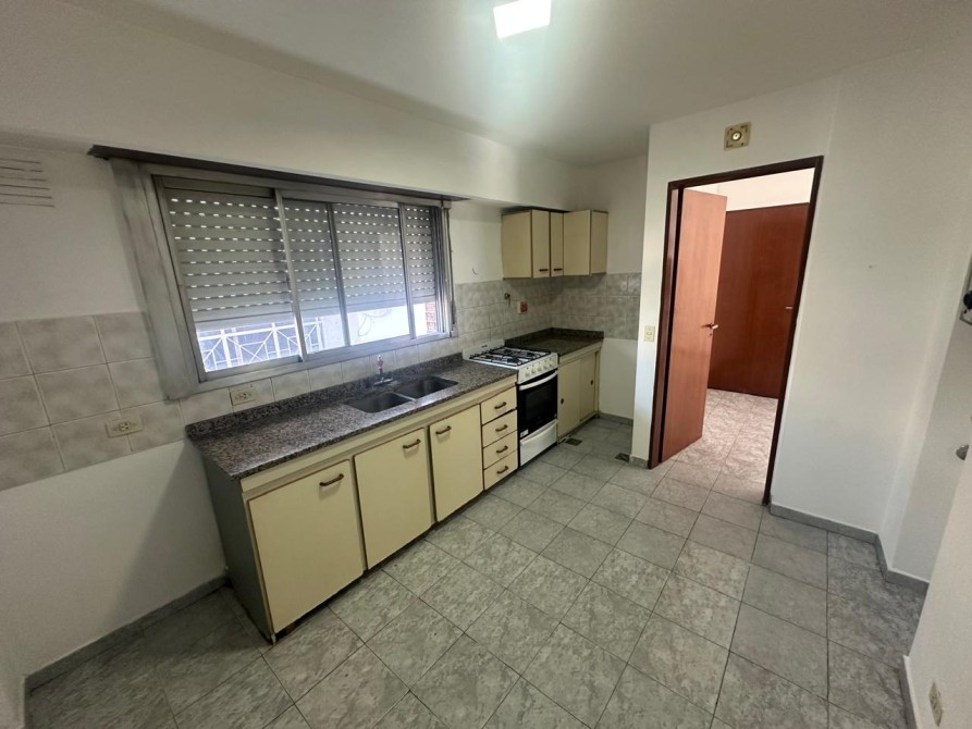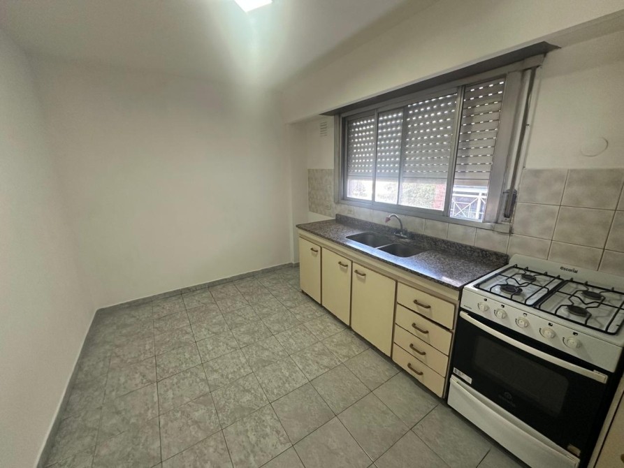 Amplia Cocina independiente con amoblamientos de bajo mesada y pequeña alacena en madera enchapada. Cuenta con cocina, calefón y conexión para lavarropas automático.-