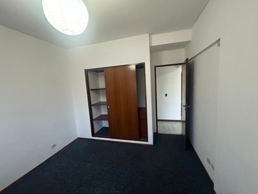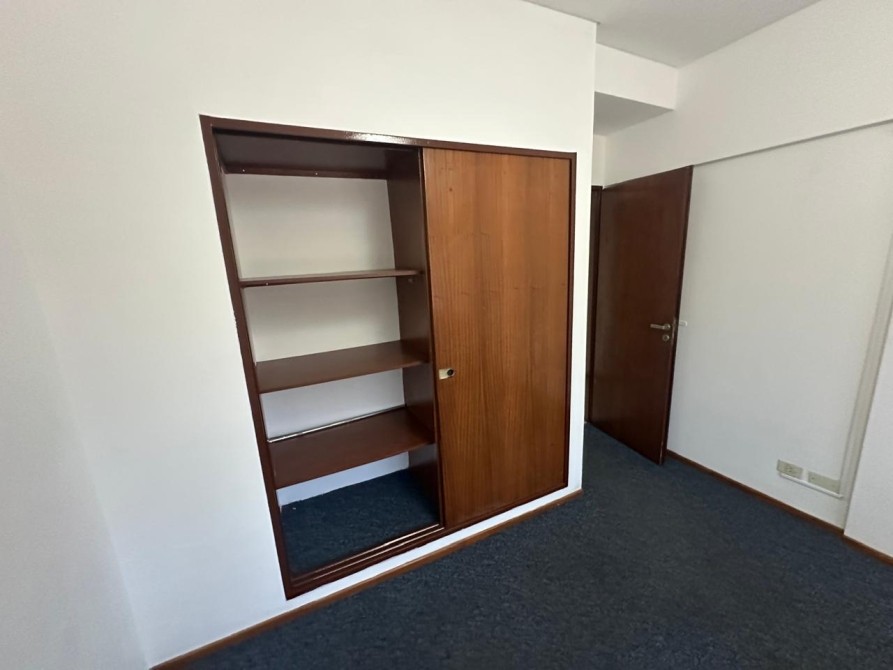 Dormitorio alfombrado con placard empotrado con interiores.-