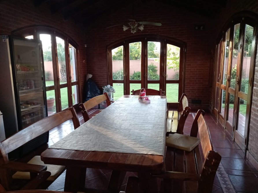 .Quincho con ventanas balcòn en madera con vista al parque y pileta-