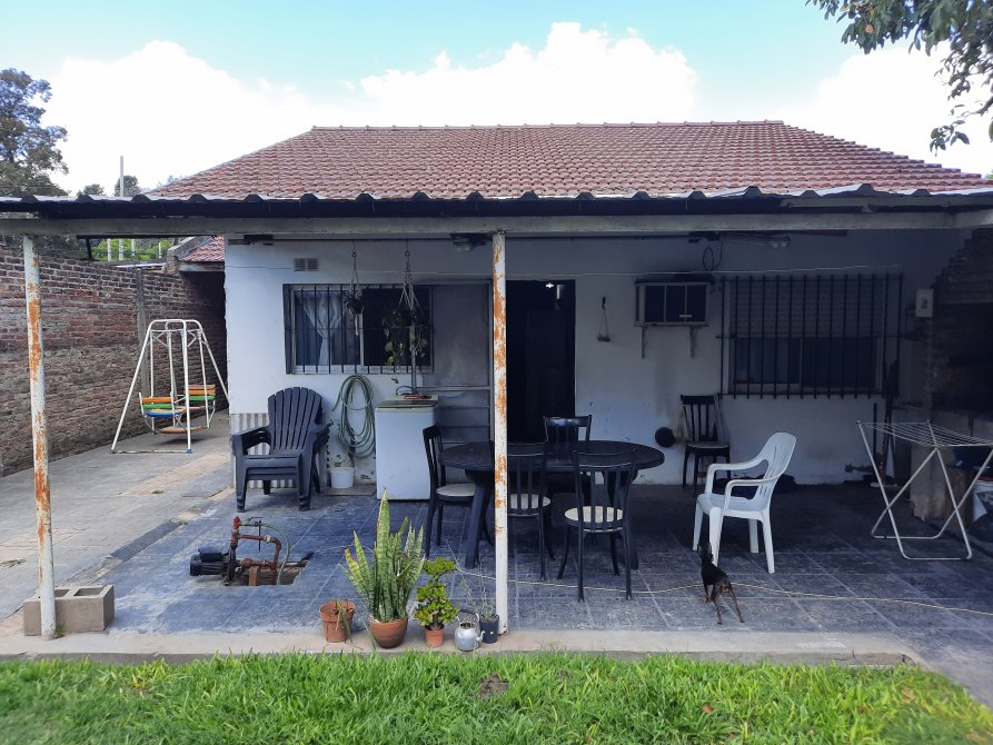En la parte de atras Quincho con piso cerámico, ventanas en aluminio, cielorraso en machimbre a la vista. Baño.