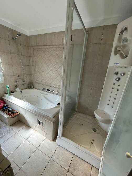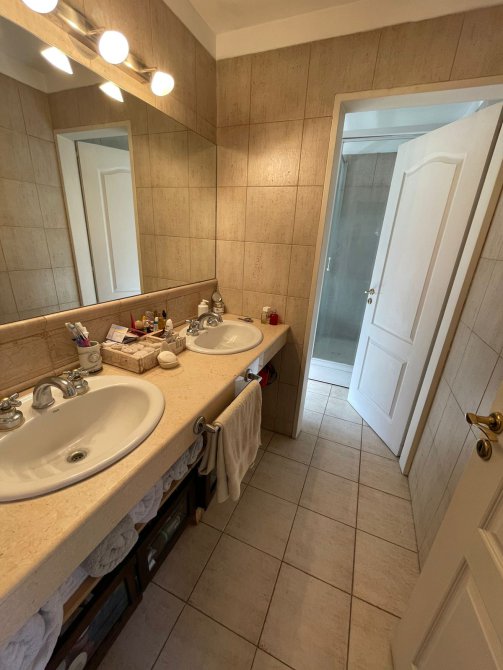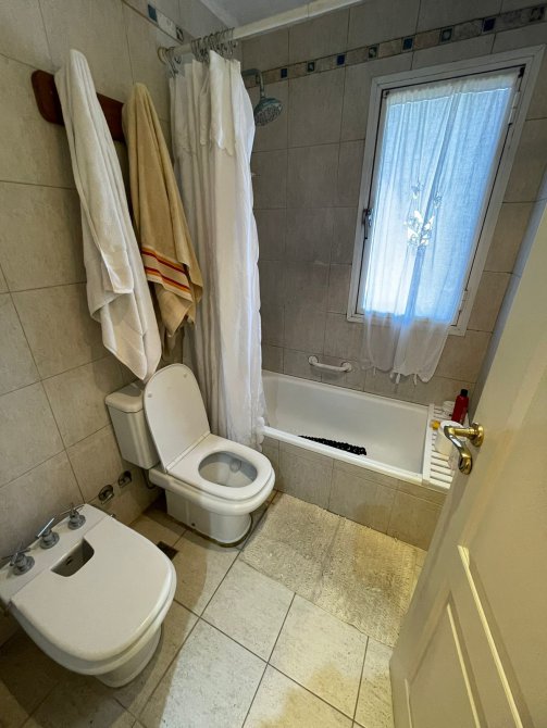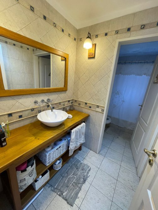 Baño completo compuesto por: ante baño con mesada en madera con bacha; Baño con sanitarios y bañera.-