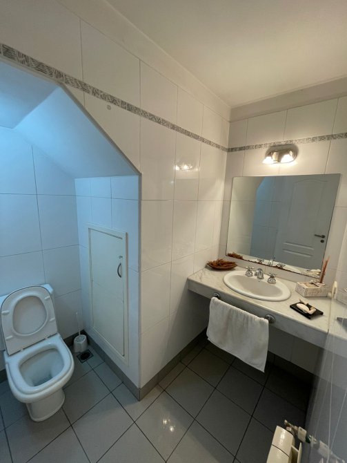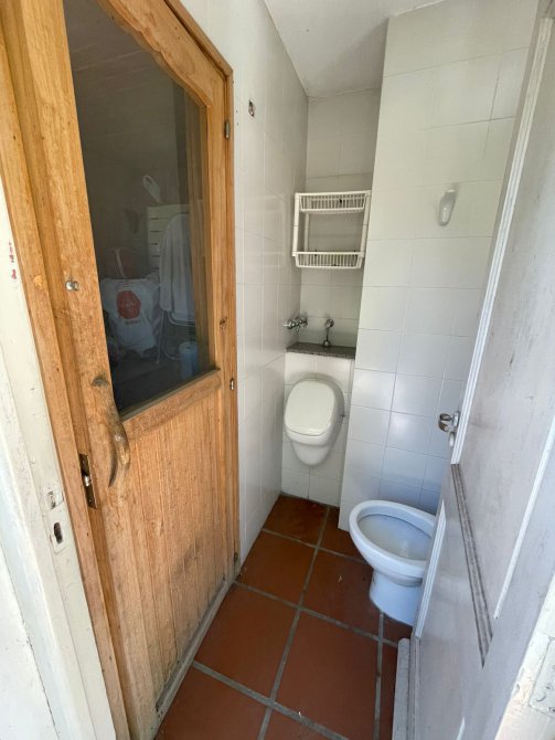 Toilette con revestimiento cerámico, mesada de mármol con bacha, sanitarios.-