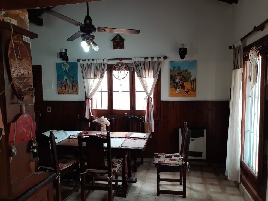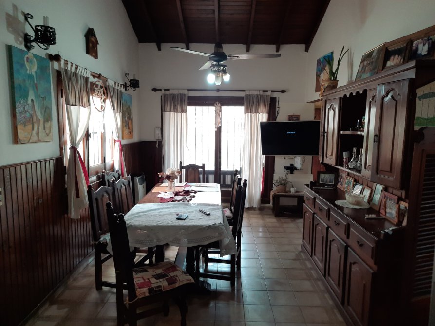 Amplio quincho con parrilla comunicado al comedor por puerta doble.