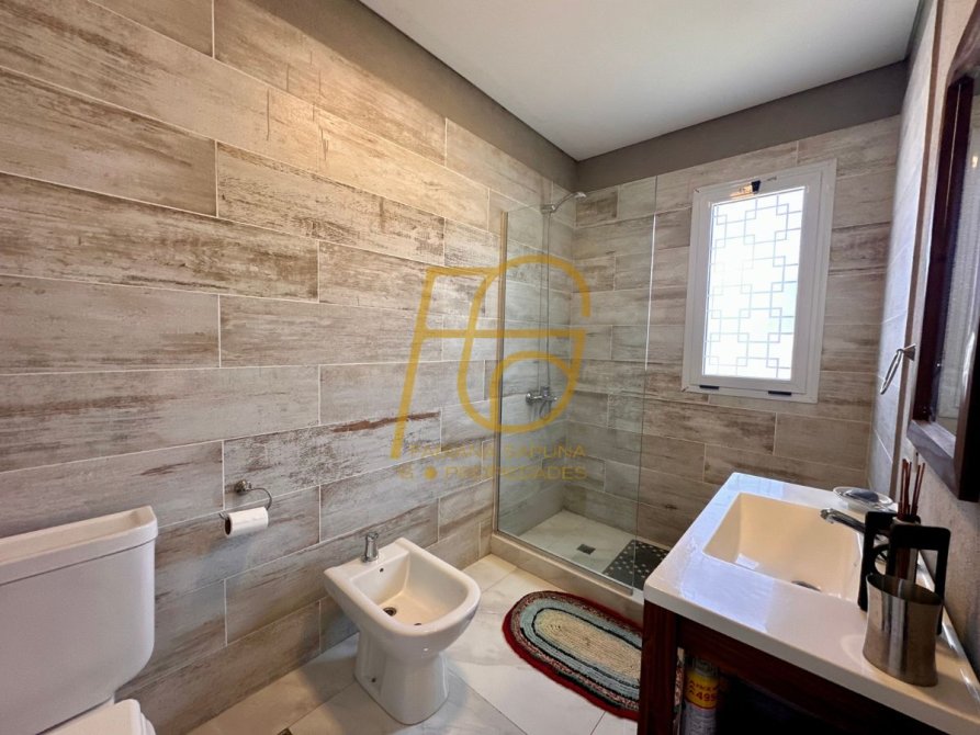 En el exterior tiene galería con parrilla completa; piscina revestida en venecitas con amplio solarium; cochera cubierta para dos vehículos, espacio descubierto para otro más.