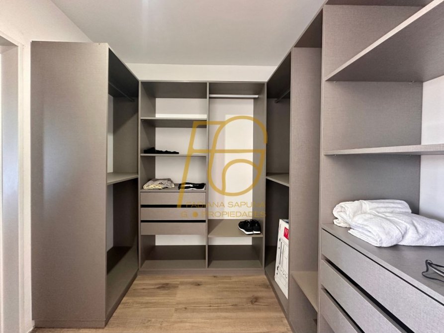 En P.A. cuenta con dormitorio principal en suite con vestidor y balcón; dos dormitorios secundarios con frente de placard y balcon individual; baño completo compartido.