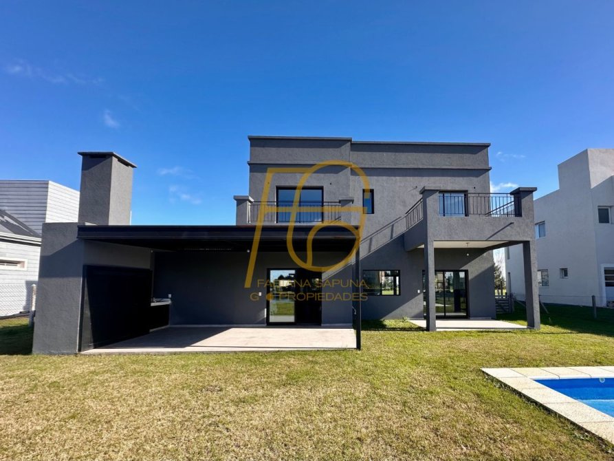 En el exterior cuenta con doble galería, una de ellas con parrilla completa y mesada; piscina; cochera cubierta para tres vehículos.