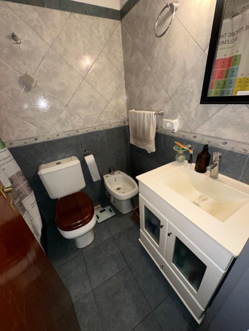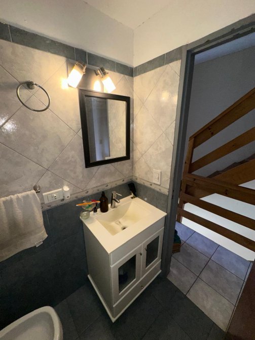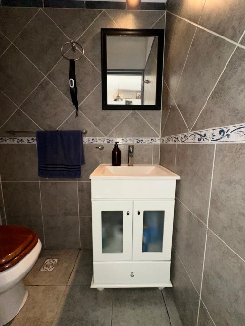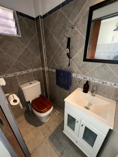 Toilette de recepción con revestimiento cerámico, Vanitory e inodoro con mochila. Muy lindo.-