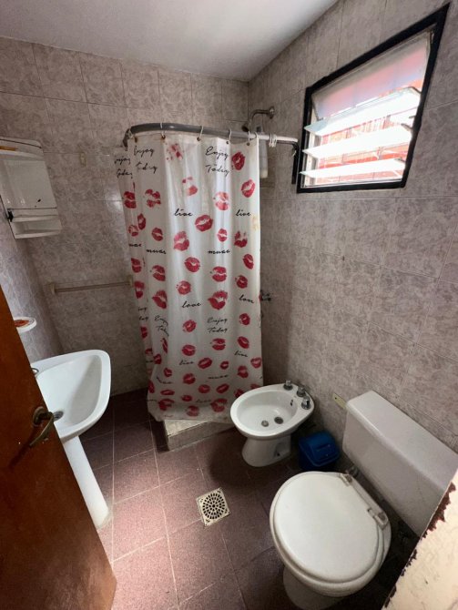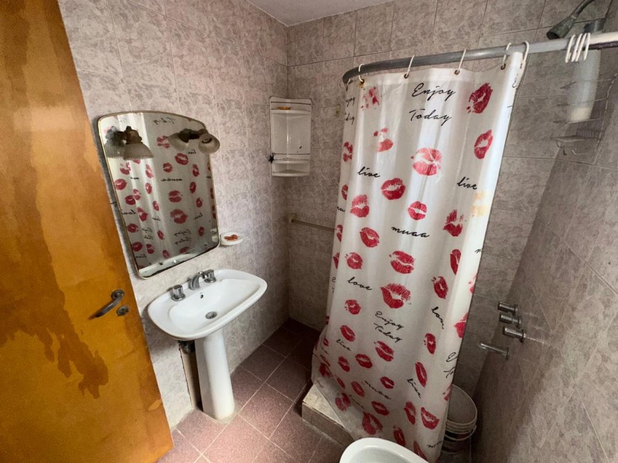 Baño completo con lavatorio, sanitarios y receptáculo de ducha.-