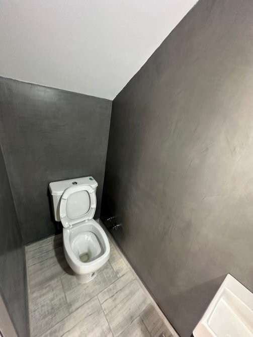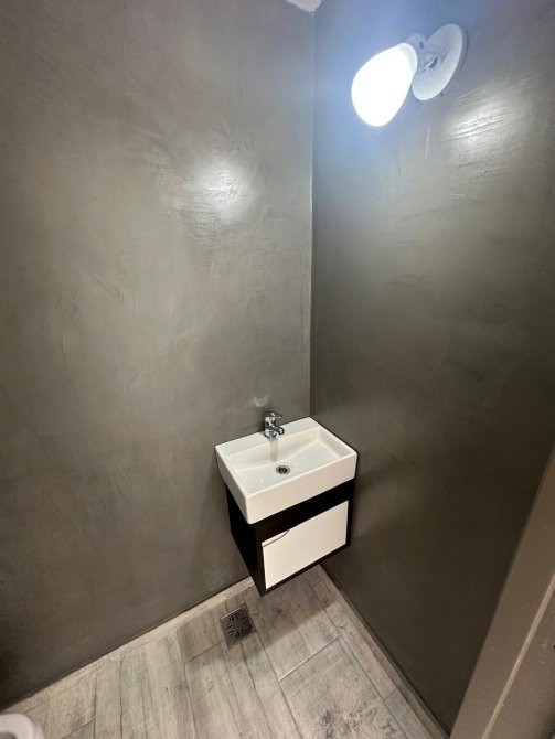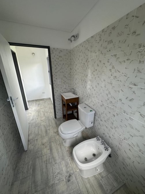 Toilete con vanitory colgante e inodoro. Revestimiento cerámico.