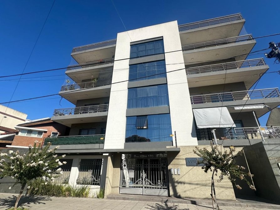 Se encuentra en el Primer Piso al frente, del Edificio Ayres de Mitre II, muy Moderno y luminoso, con un excelente diseño y estado general. Cuenta con amplios espacios comunes donde se desarrollan:
