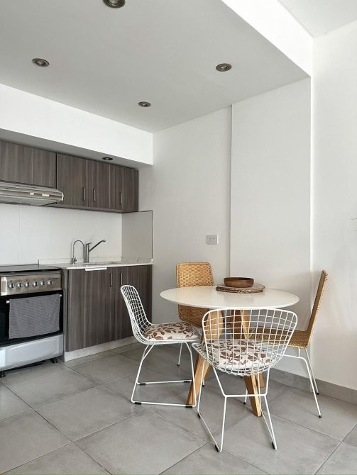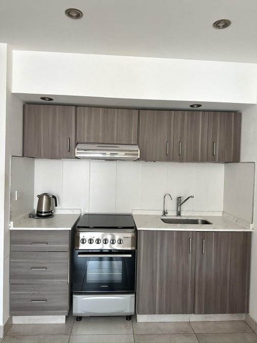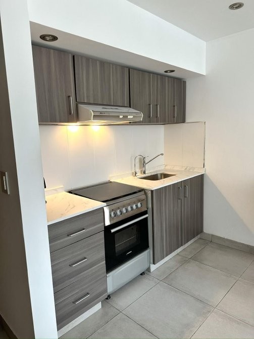 La cocina integrada, de estilo moderno, se encuentra equipada con muebles de bajo mesada y alacena de excelente calidad, bacha de acero inoxidable con grifería monocomando, artefacto de cocina en acero inoxidable y extractor de aire.-