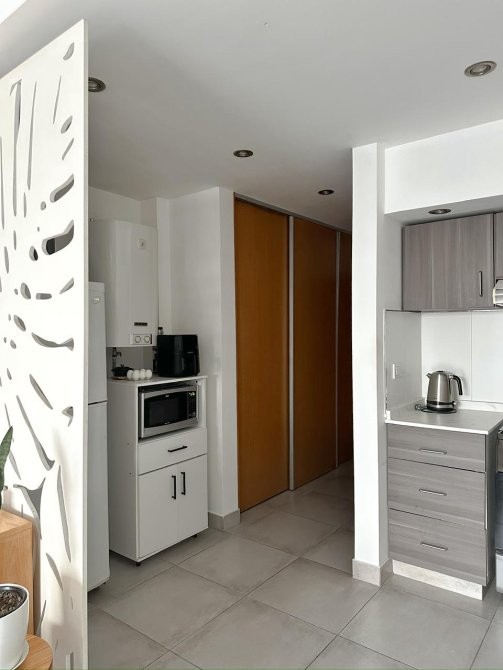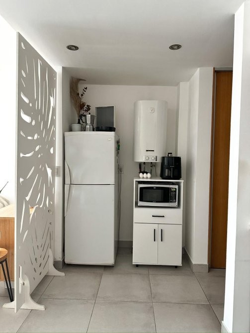 Ingreso por pasillo distribuidor con un amplio Placard empotrado con puertas corredizas en madera, cuenta con espacio para heladera, conexiones para lavarropas automático y Termotanque Orbis de 80 lts.-